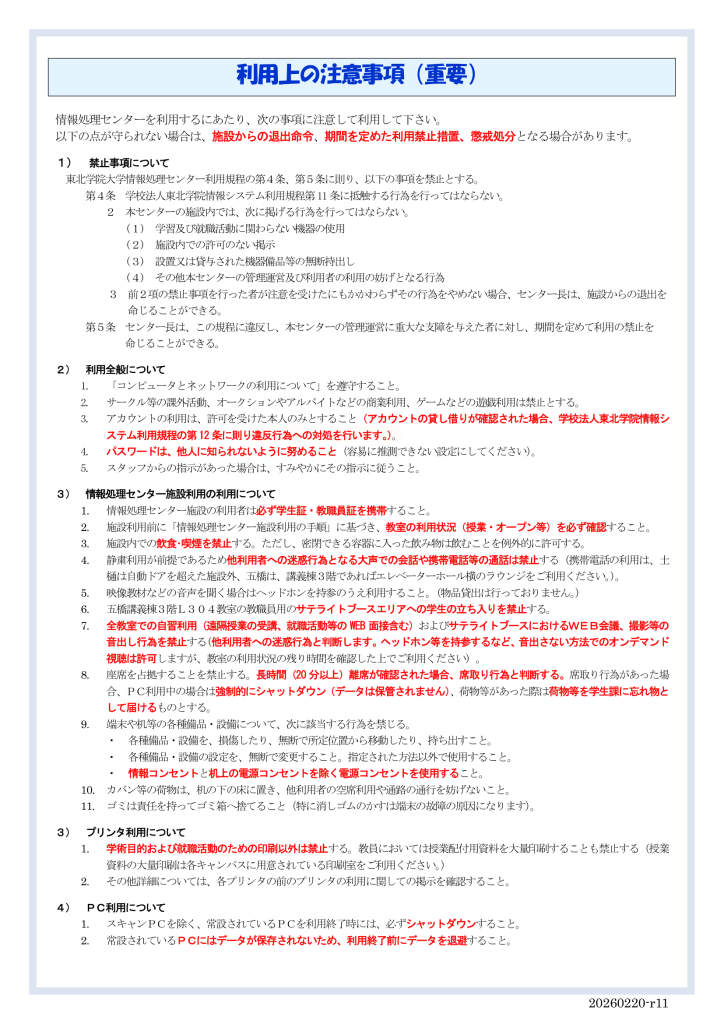 初めて情報処理センターを利用する方は必ず本内容をご確認ください。
