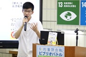ビブリオバトルとは、参加者が順番に本の紹介をするコミュニケーションゲームで、ビブリオバトラー(発表者)がおすすめ本をプレゼンテーションし、それぞれの発表の後に参加者全員でその発表に対するディスカッションを行います。全ての発表が終了した後にバトラーと観客が一番読みたくなった本に投票し「チャンプ本」を決定します。