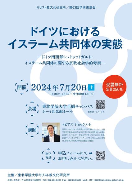ドイツのイスラーム共同体はいま、どのような状況なのか。キリスト教に特徴づけられた環境の中で、イスラーム共同体はどのように発展していくのだろうか。南西ドイツにある国際リーベンツェル大学の研究所は、近年、ドイツ南西部の工業都市シュトゥットガルトにある66のイスラーム共同体に関して大規模な調査を行った。イスラーム教徒は現代ドイツにおいて、どのような信仰生活を営み、いかなる共同体を形成しているのか。また、ヨーロッパ社会にどの程度、統合され、また、距離をもっているのか。本講演では、先の大規模調査をもとに欧州のイスラーム共同体に関して、宗教社会学的に考察する。