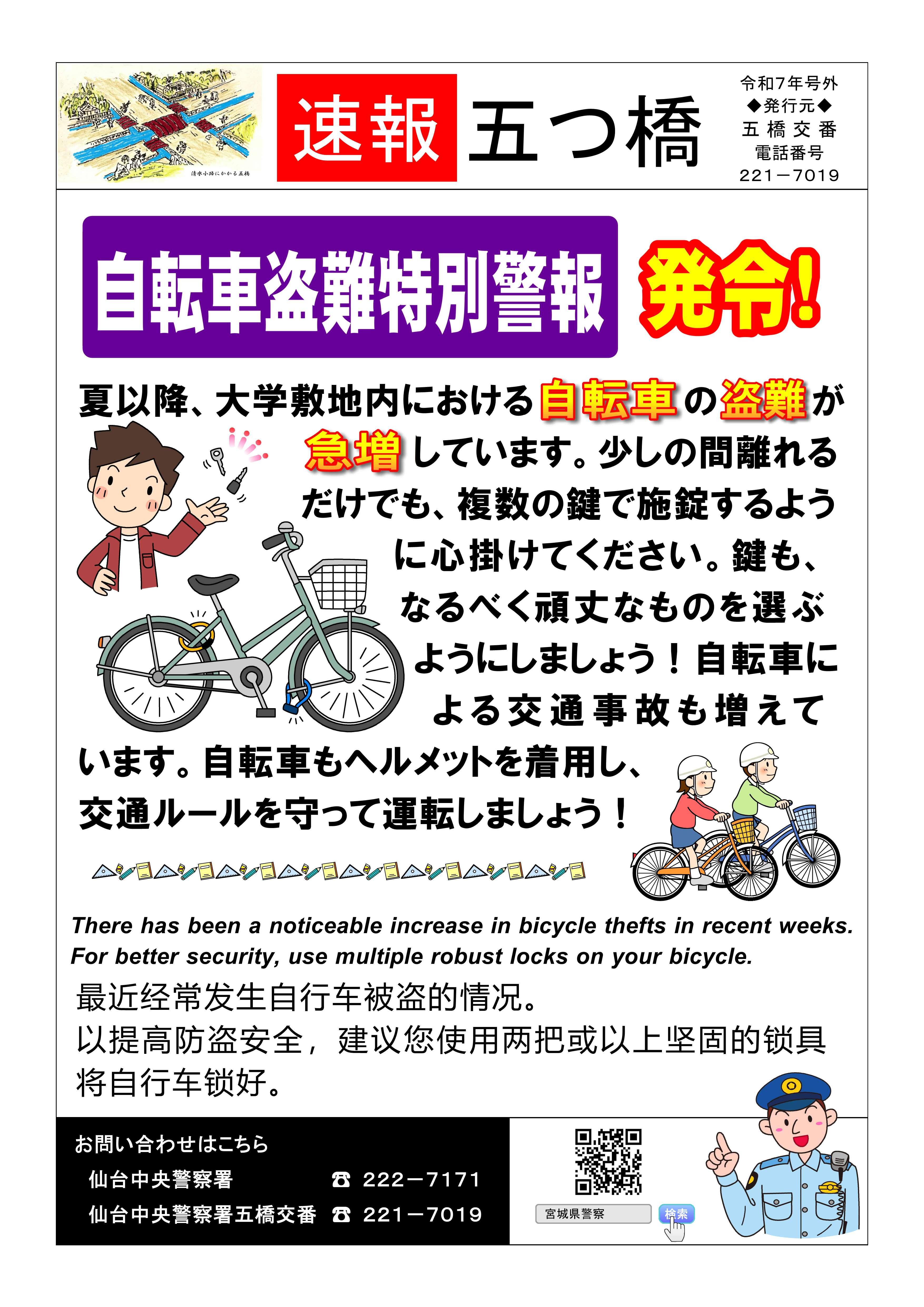 自転車盗難特別警報 発令! (2025.10.24)