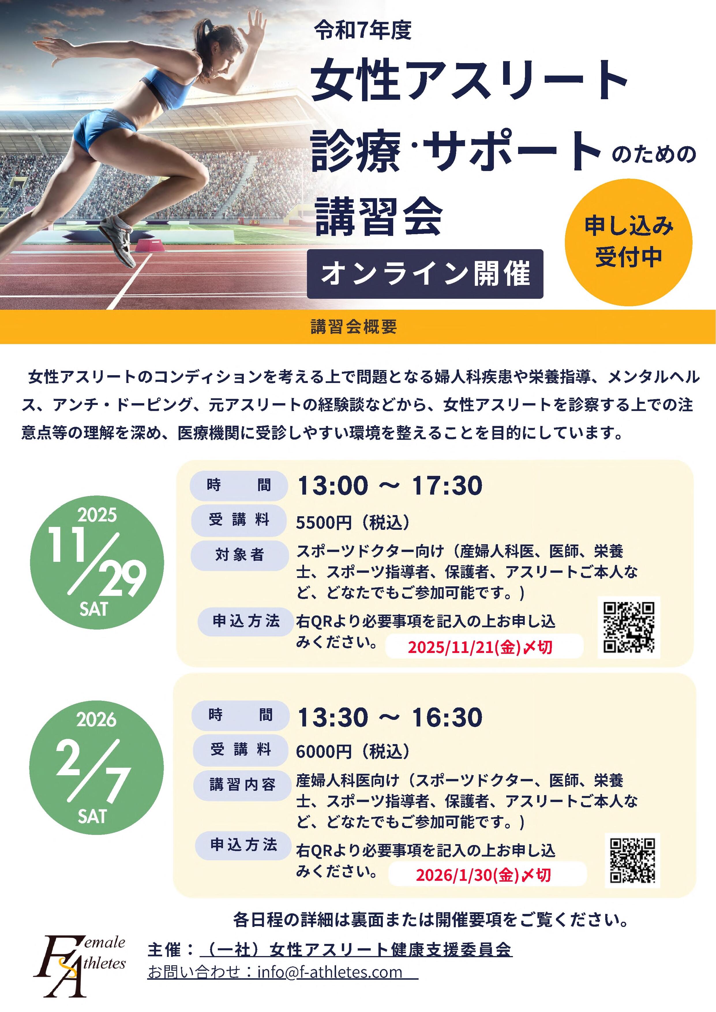 UNIVASから女性アスリート診療・サポートのための講習会(2件)【有料】のご案内 (2025.10.18)