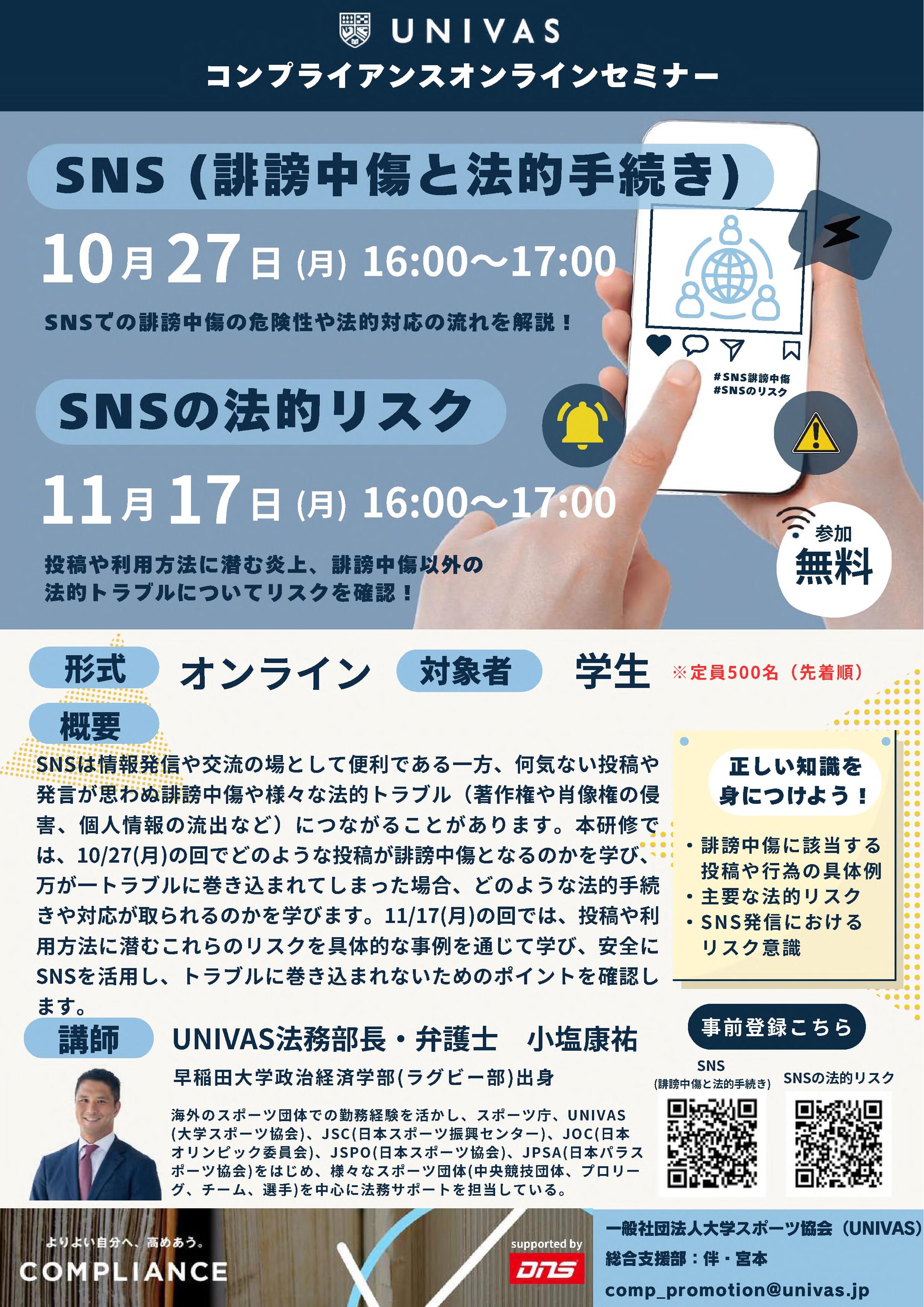 UNIVASコンプライアンスオンラインセミナー(2件)のご案内 (2025.10.18)