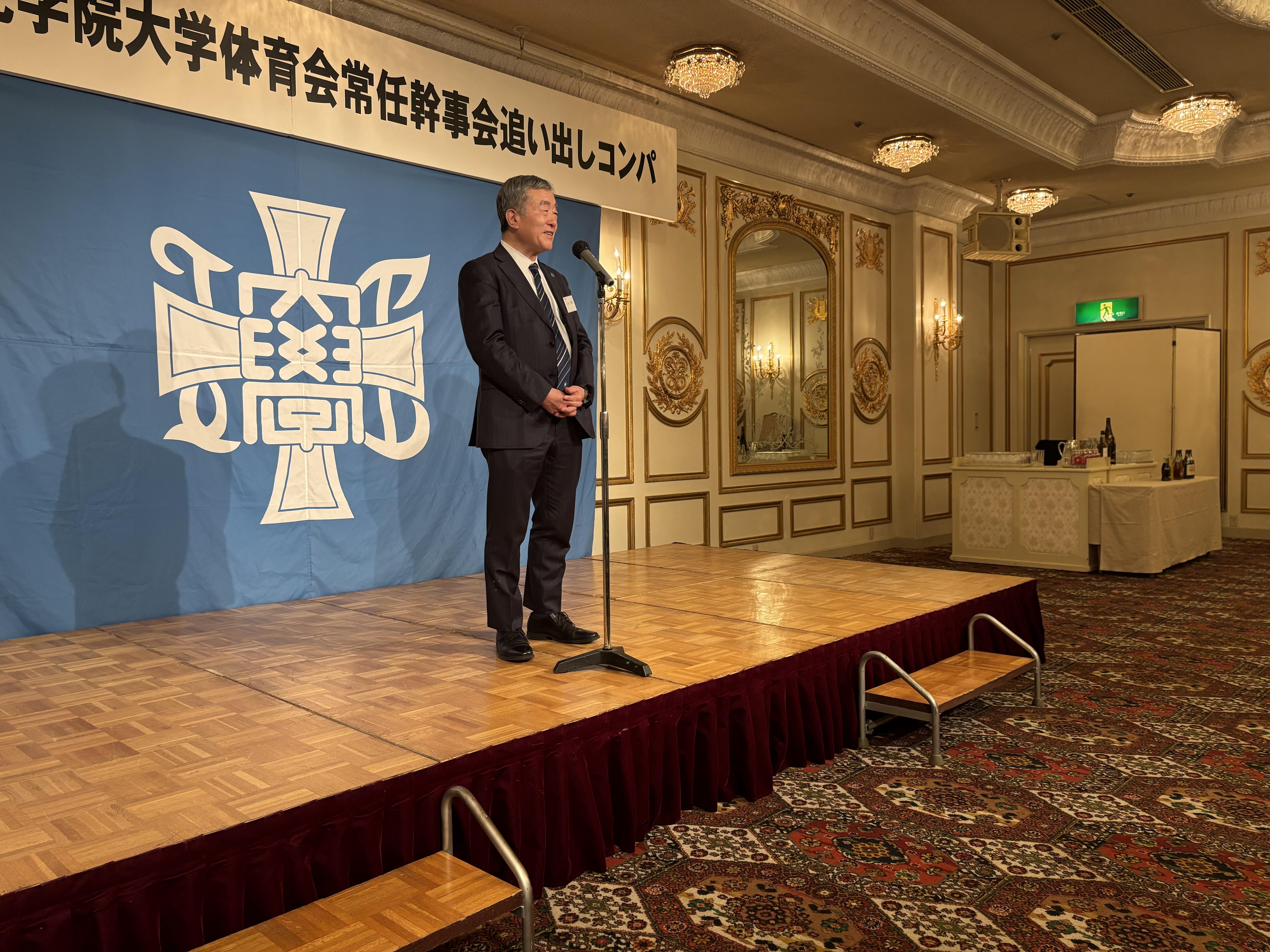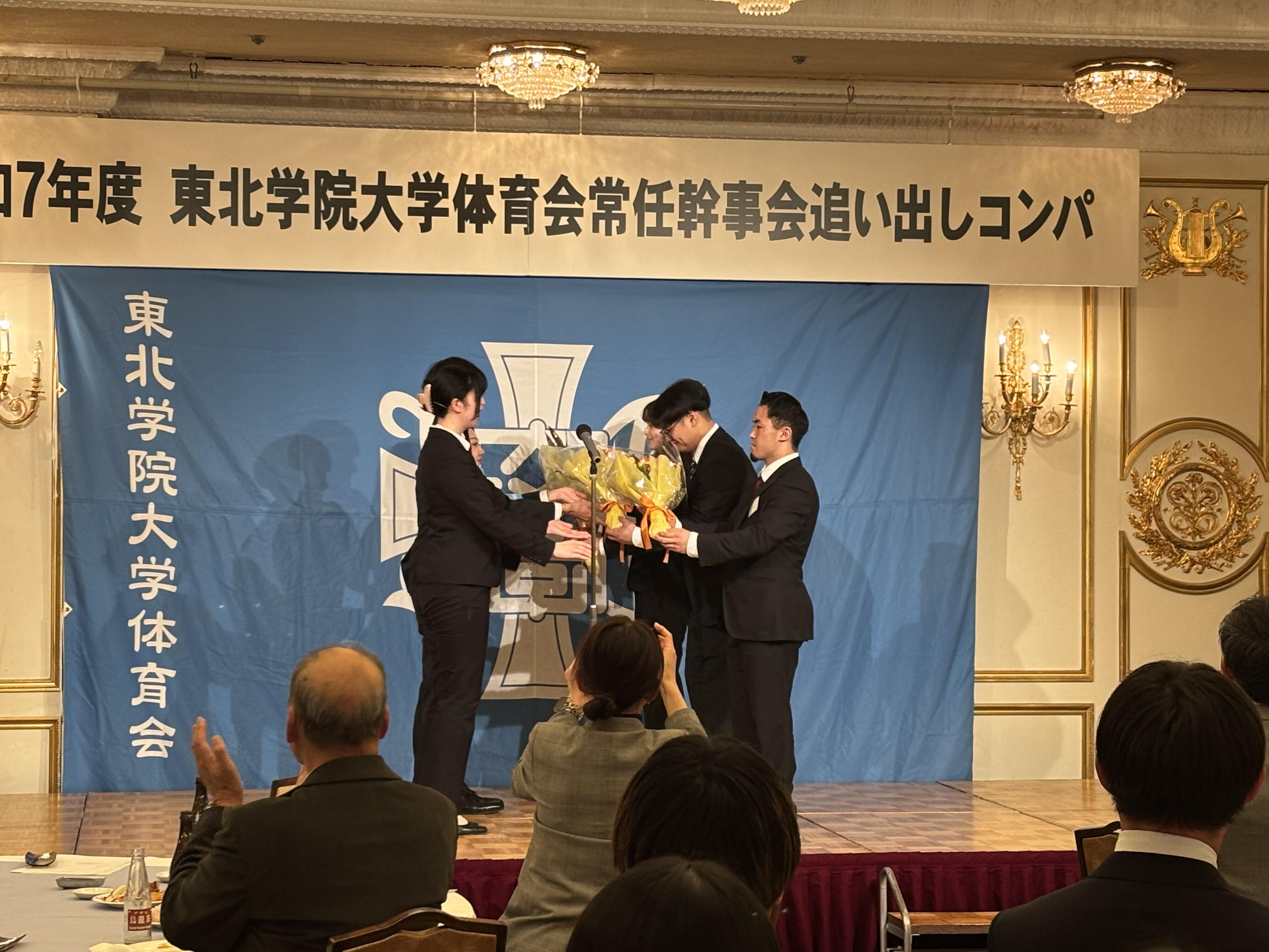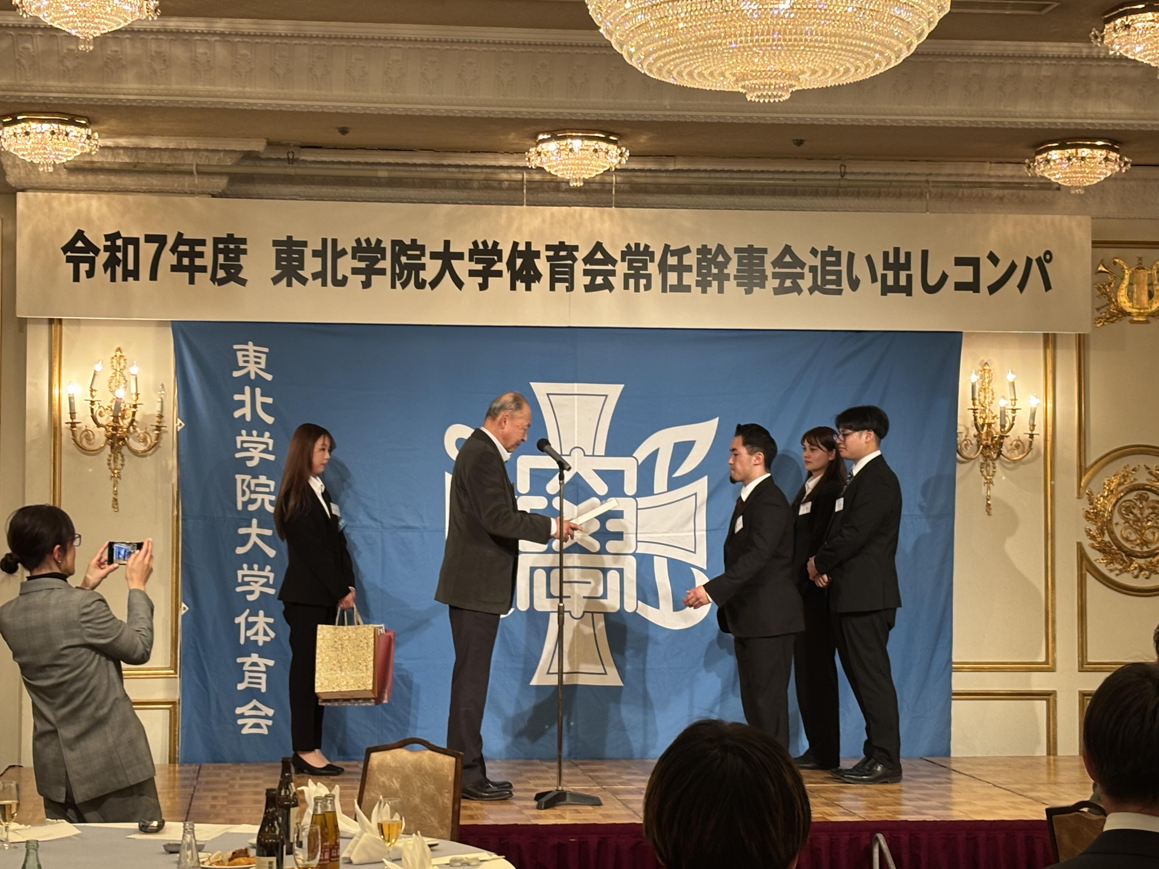 2026年3月5日(木)、大西学長をはじめとする来賓の方々や体育会OBの方々にご出席いただき、第75代体育会常任幹事会追い出しコンパが江陽グランドホテルで開催されました。