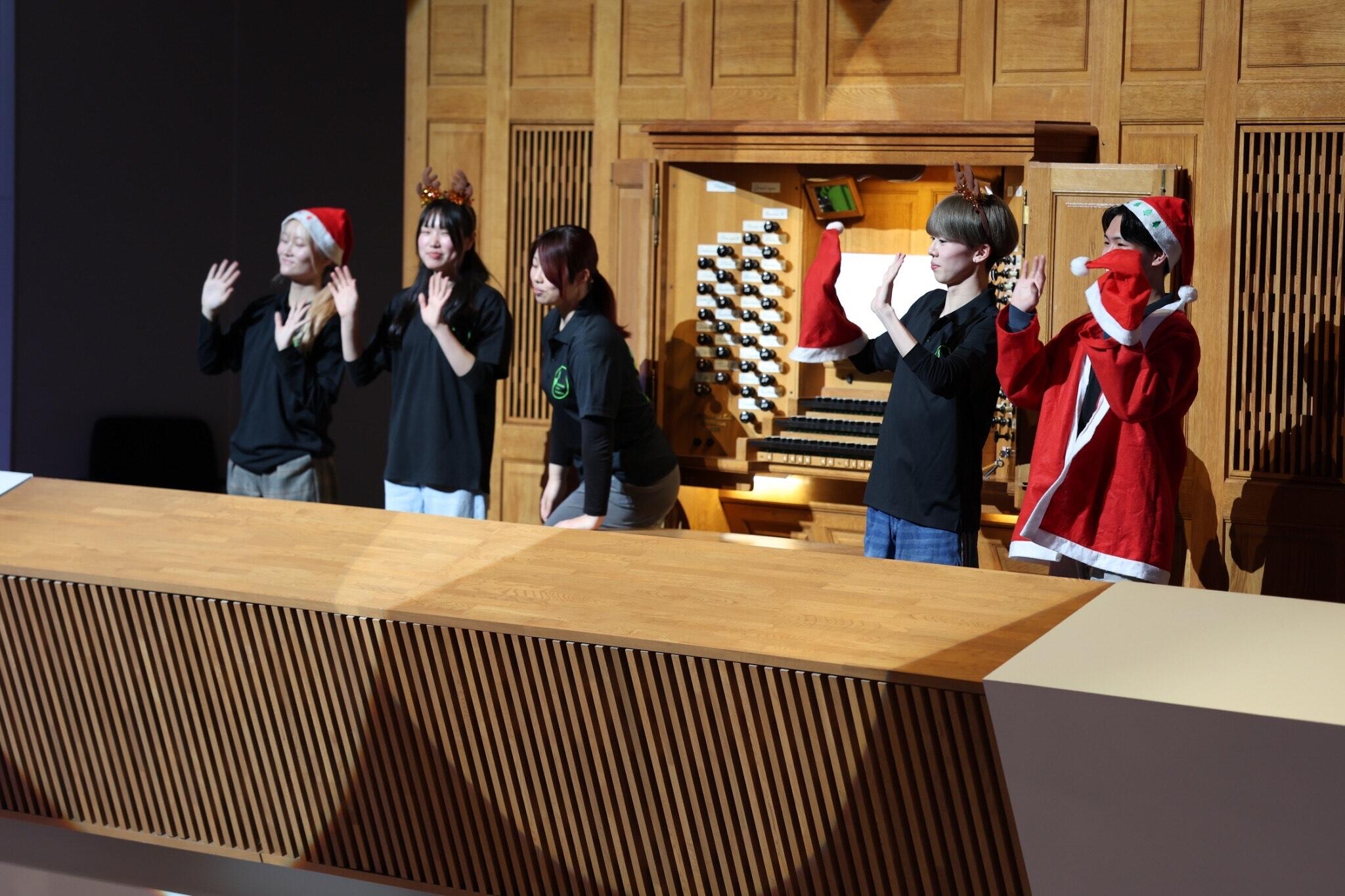 演奏では、吹奏楽の名曲「富士山」や、約20分の⼤曲である「ローマの松」に加え、季節感あふれるクリスマスソングも披露され、会場は和やかな雰囲気に包まれました。
