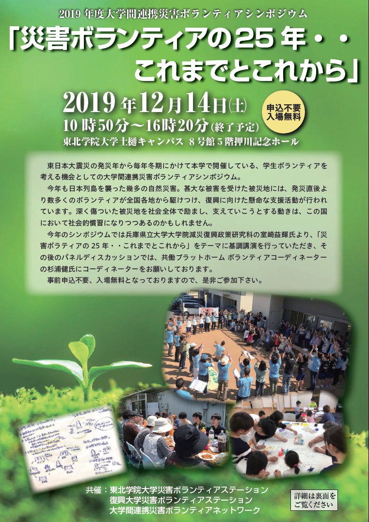 学内での組織改編により、東北学院大学災害ボランティアステーションは、総合ボランティアステーションに体制が移行されました。